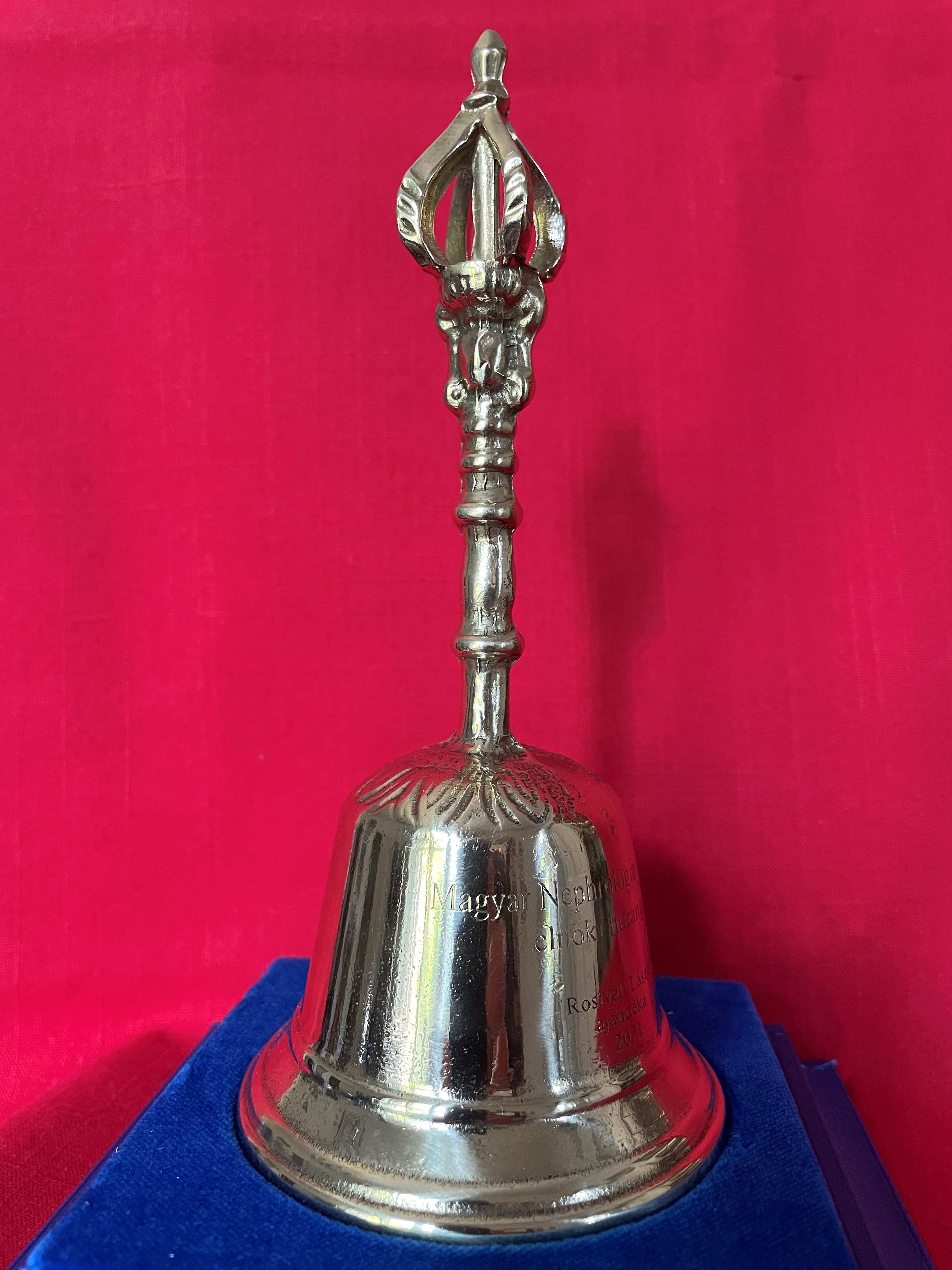 Ennek jegyében ajándékoztam a kis sárgaréz harangot, mint a Magyar Nephrologiai Társaság elnöki harangját (2021) a MANET-nak, hogy a jelentős elnöki döntések alkalmával messze hangzó csilingelő hangja erősítse meg a döntés fontosságát és jelképezze az ügy erkölcsi és szakmai tisztaságát, fényessége pedig tükrözze az esemény ünnepiességét.