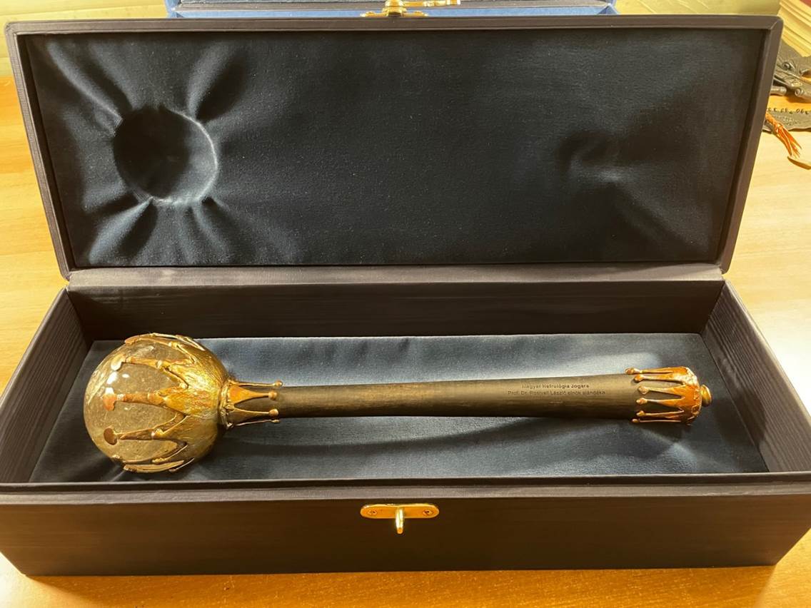A MANET elnökségem befejezésével Társaságunknak ajándékoztam egy, az általam megálmodott eszközt, mely alkalmas arra, hogy a társaság elnöke megbízása kezdetén történő átvételekor érezze a szolgálattal és kapott hatalmával járó feladat súlyát, melyet a Magyar Nefrológia Jogara méltóképpen és ünnepélyesen kifejez.