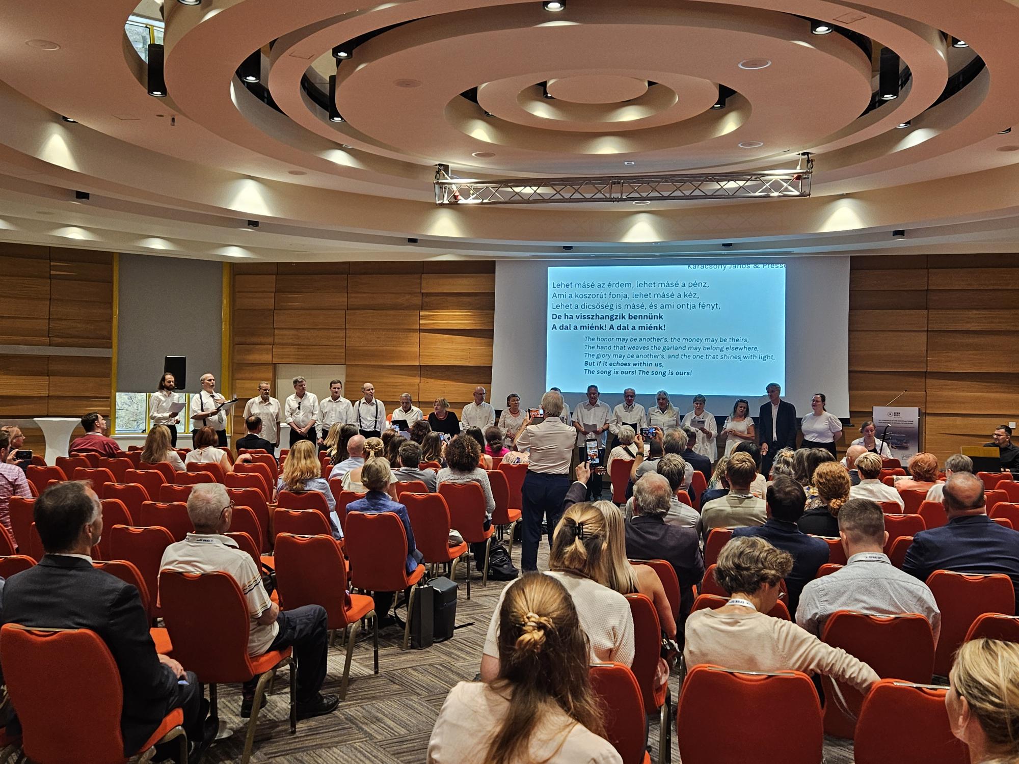 A megnyitó ünnepségen részt vett Hankó Balázs Kulturális és Innovációs Miniszter, Szabó Attila, a Semmelweis Egyetem Klinikai Rektorhelyettese és Cserháti Péter, az SE Rehabilitációs Klinika igazgatója, a Magyar Rehabilitációs Társaság Elnöke. A Megnyitó különösen érdekes és felemelő hatású műsorszáma volt az Afázia Kórus (Hangadó Együttes) fellépése, mely megadta a rehabilitációs konferencia empatikus és motiváló alaphangulatát.