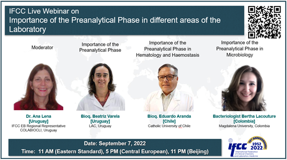 The next IFCC webinar: "Importance of the Preanalytical Phase in different areas of the Laboratory" September 7, 2022.
